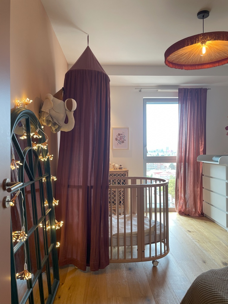 Cette chambre est une parenthèse de tendresse, où chaque élément dialogue avec les autres pour composer un univers poétique, élégant et intemporel, pensé pour accompagner l’enfant dans ses rêves au fil du temps.