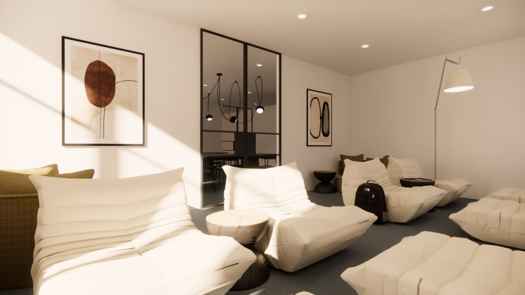 Des zones de détente et de relaxation, aménagées avec du mobilier confortable au design contemporain, offrant un équilibre essentiel entre concentration et repos.